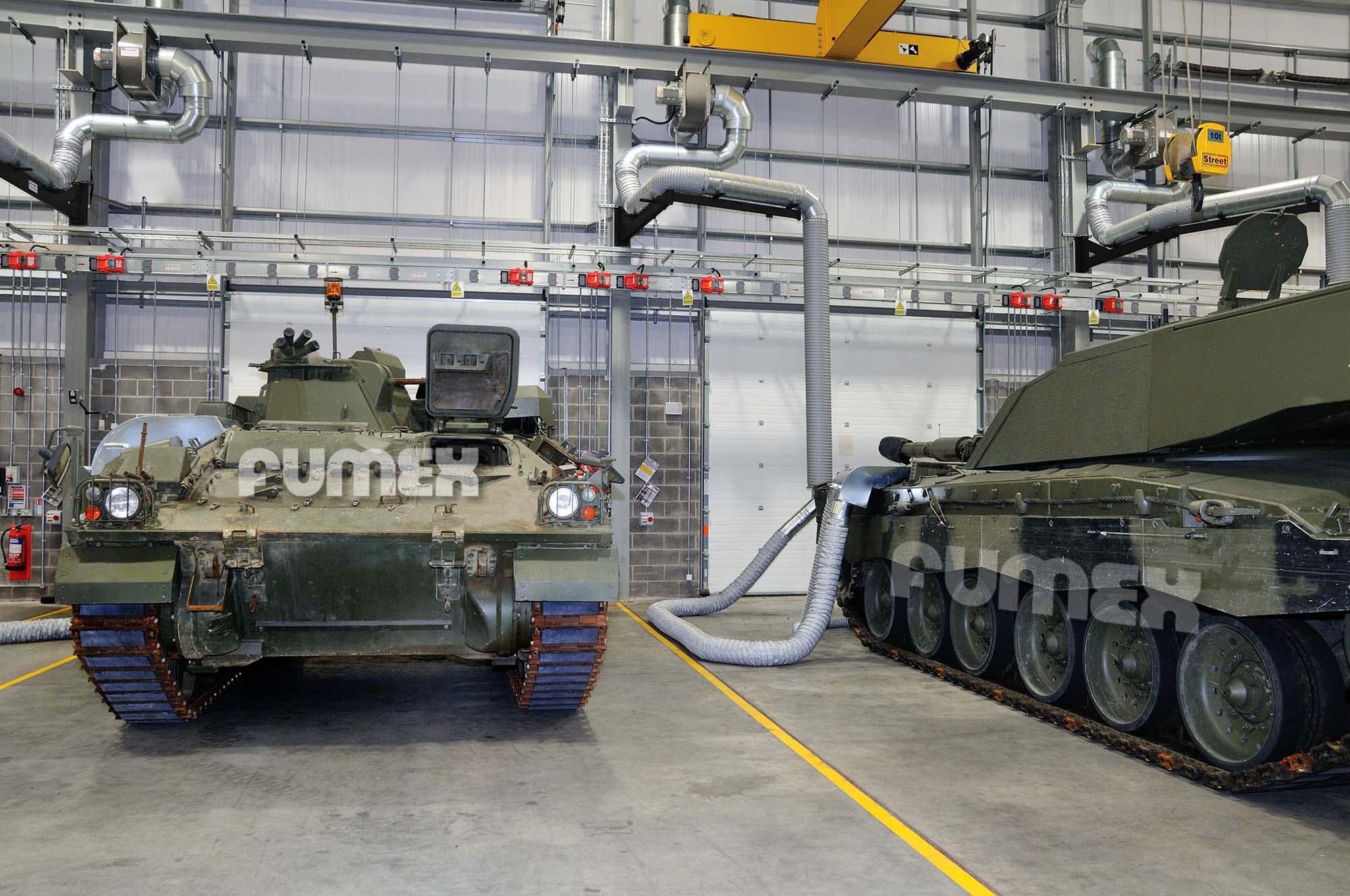 We always install high-performance centrifugal fans and can supply a vast range of rubber or steel nozzles, free-standing nozzles and exhaust hoods for military vehicles.
