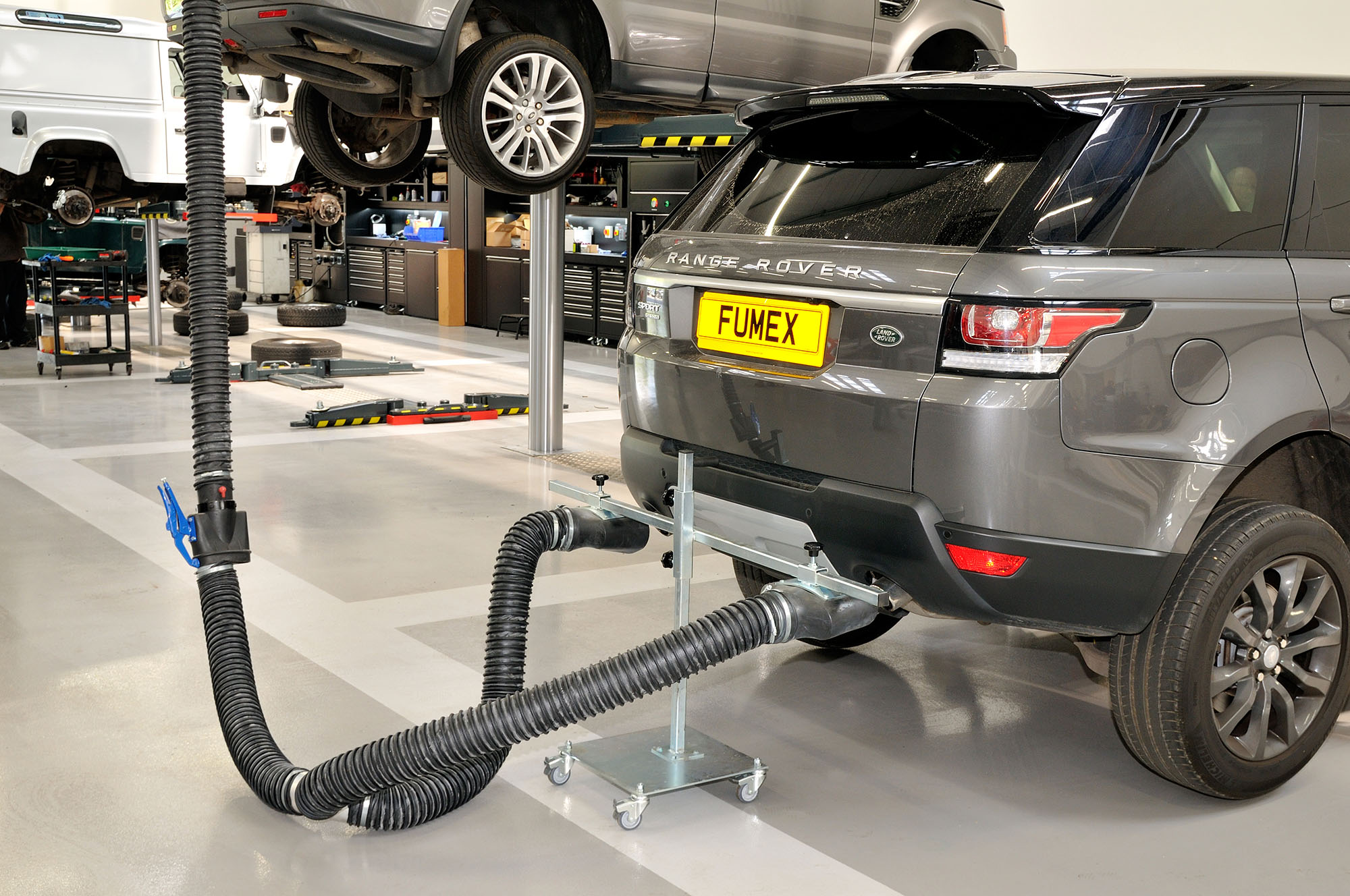 To overcome the problem of ‘built-in’ exhausts outlets, Fumex Ltd have designed and manufactured our own range of innovative Free-Standing Nozzles. This ensures that whatever the vehicle, whatever the position (floor level or at ramp high) we can deliver a comprehensive, yet cost-effective system.