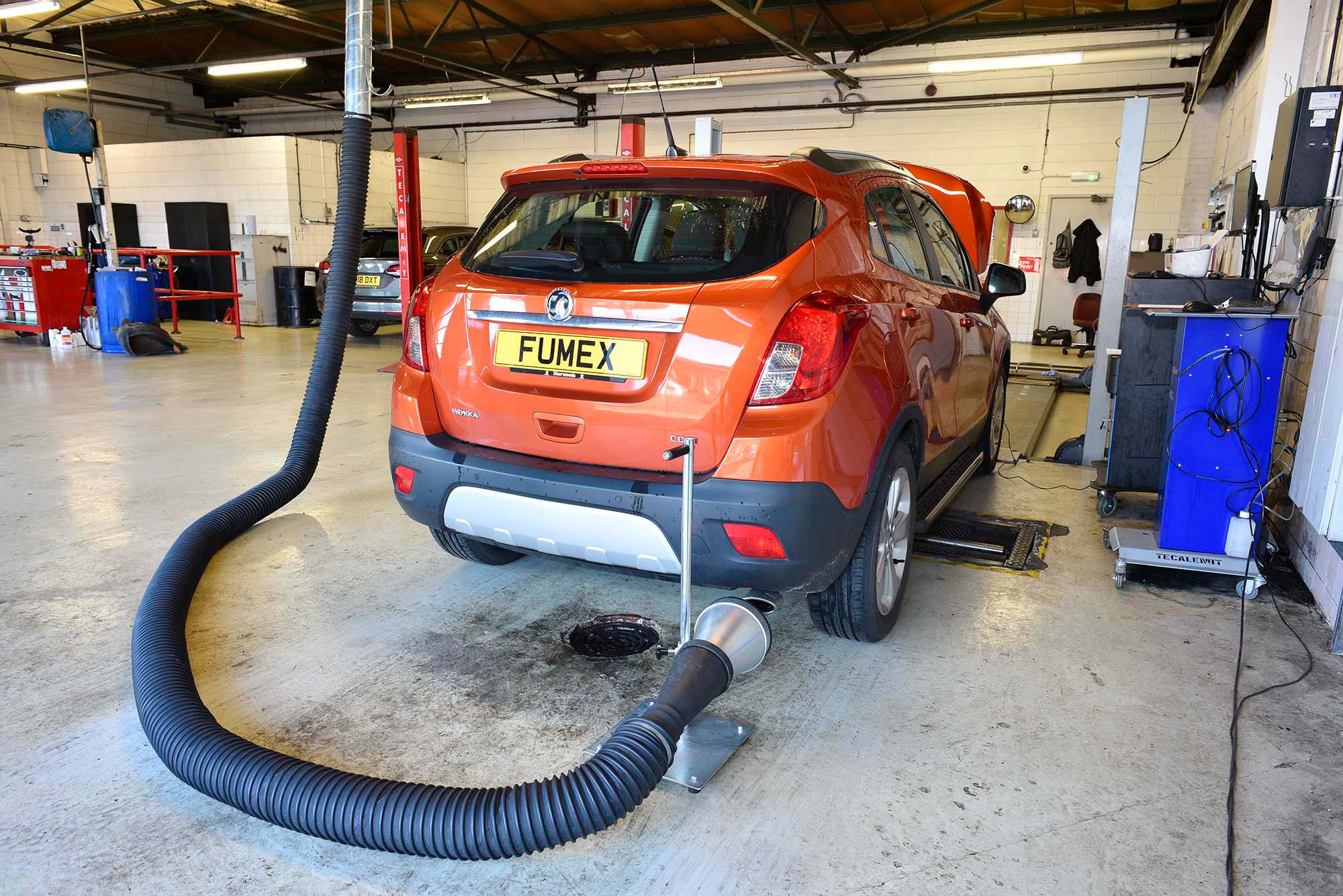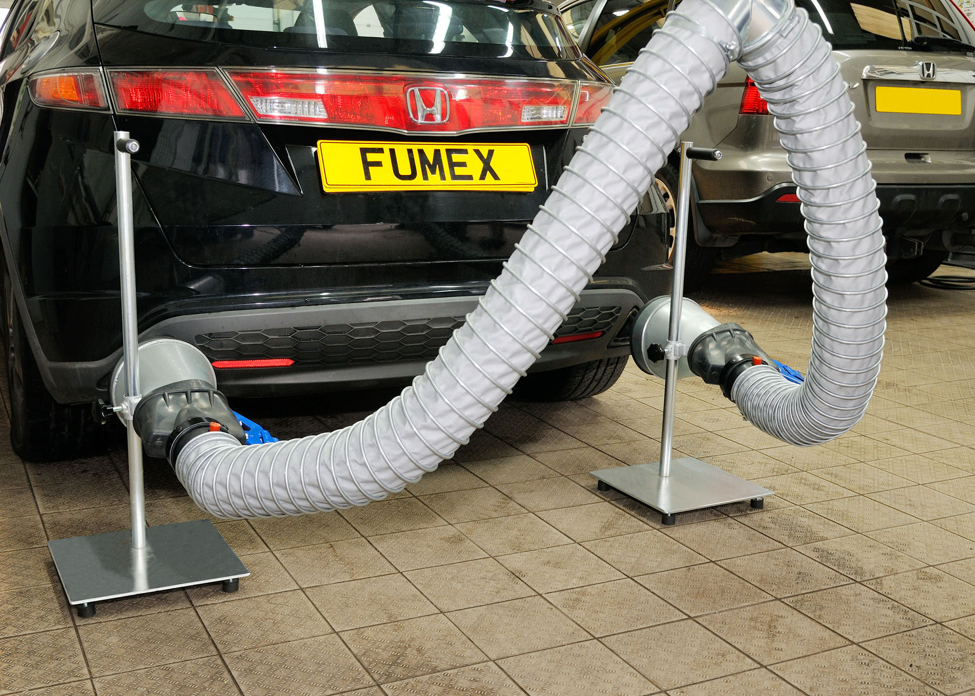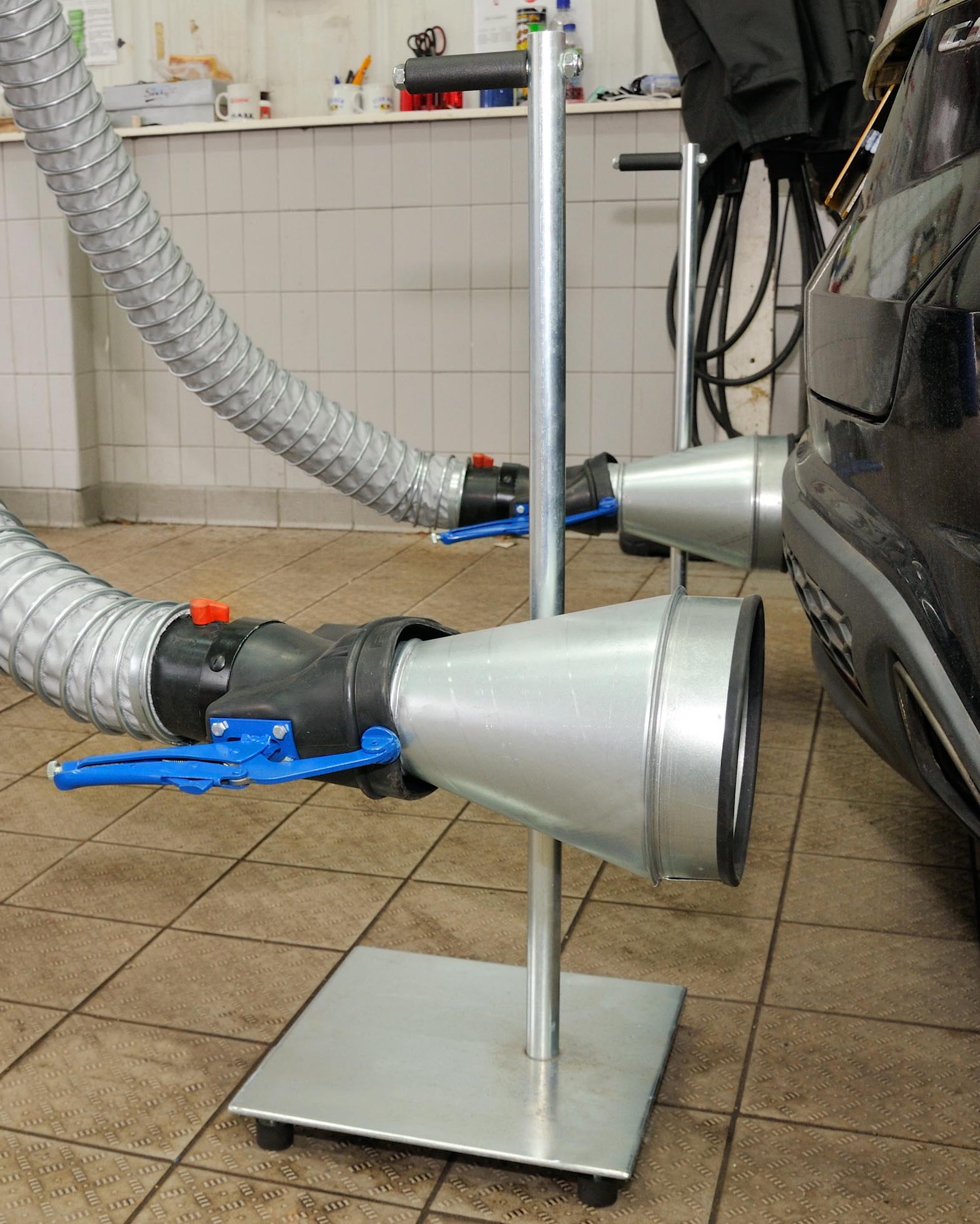 The Fumex Ltd Free-Standing Cone Nozzle can be used in many automotive applications, including MOT bays. The sturdy base is fitted with rubber feet to prevent movement when connected to the extraction system. Your existing extraction nozzle will simply clamp (or push fit) onto the rear of the cone and it’s ready to use.