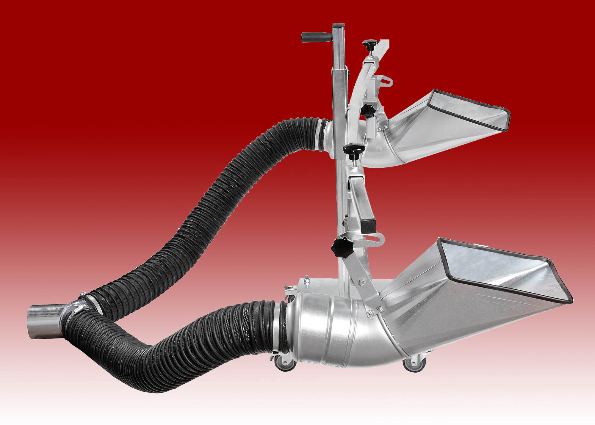Supplied with a sturdy wheeled base for stability and 2 into 1 high temperature Y piece, the Free-Standing Fully Adjustable Twin is adaptable to suit many vehicles in the modern motoring industry.