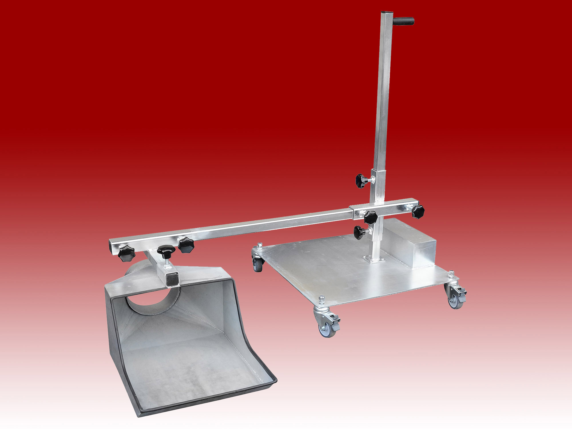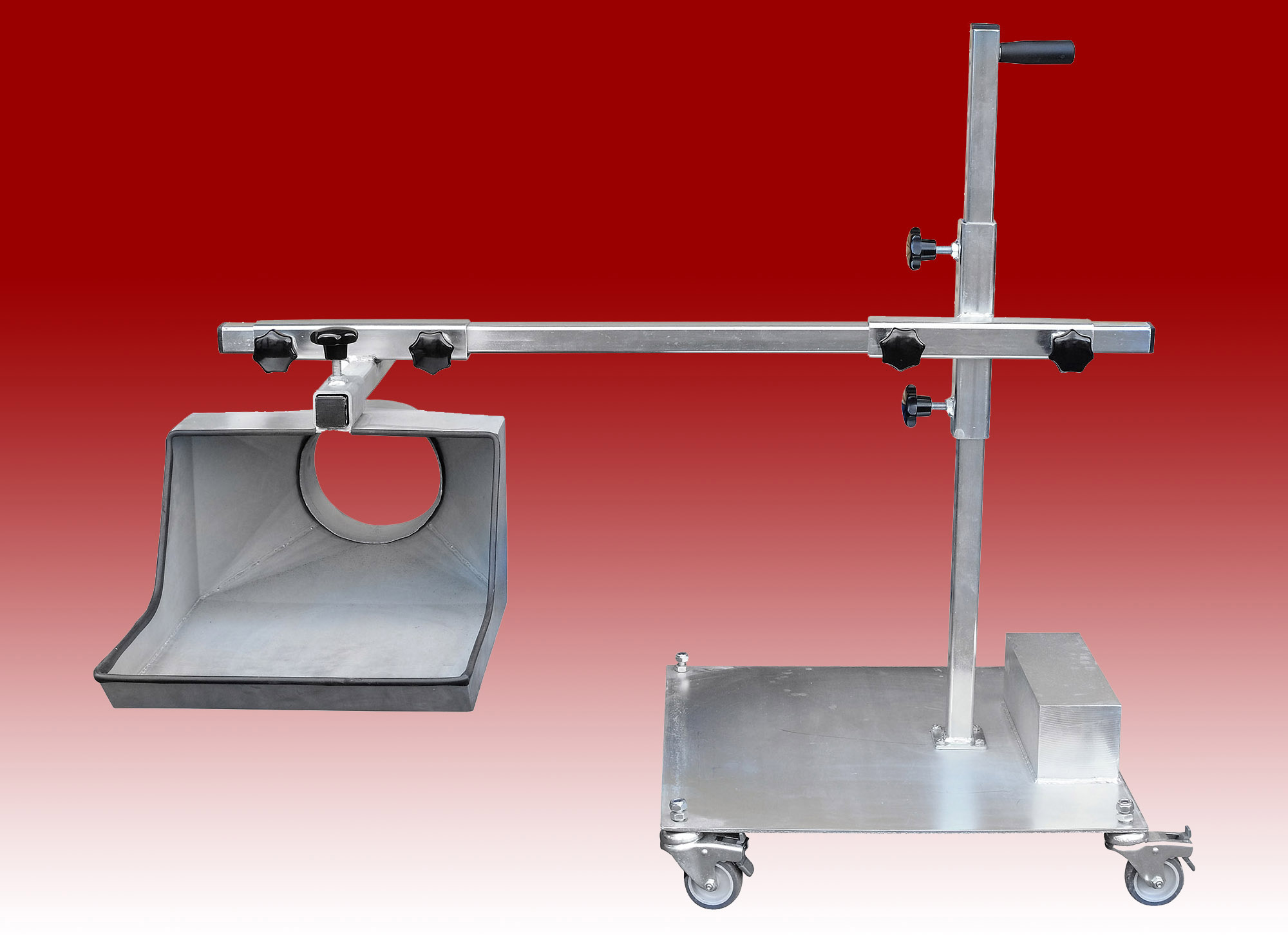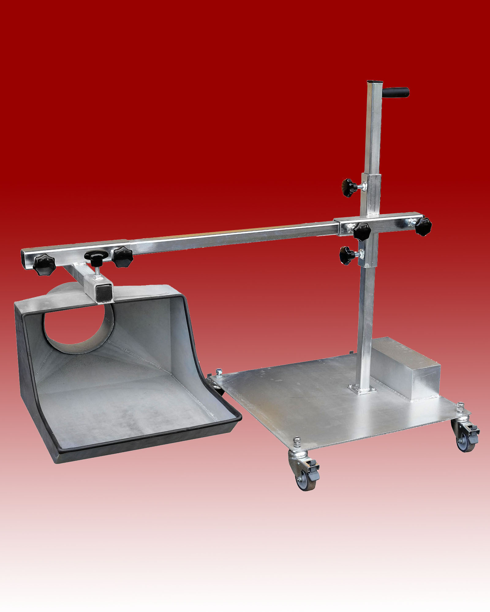 This was designed to allow diesel fumes to be captured when a bus is over an inspection pit during servicing or repairs. The Free-Standing base is fitted with a counterweight to ensure stability, whilst the tray nozzle is extended out under the exhaust outlet.