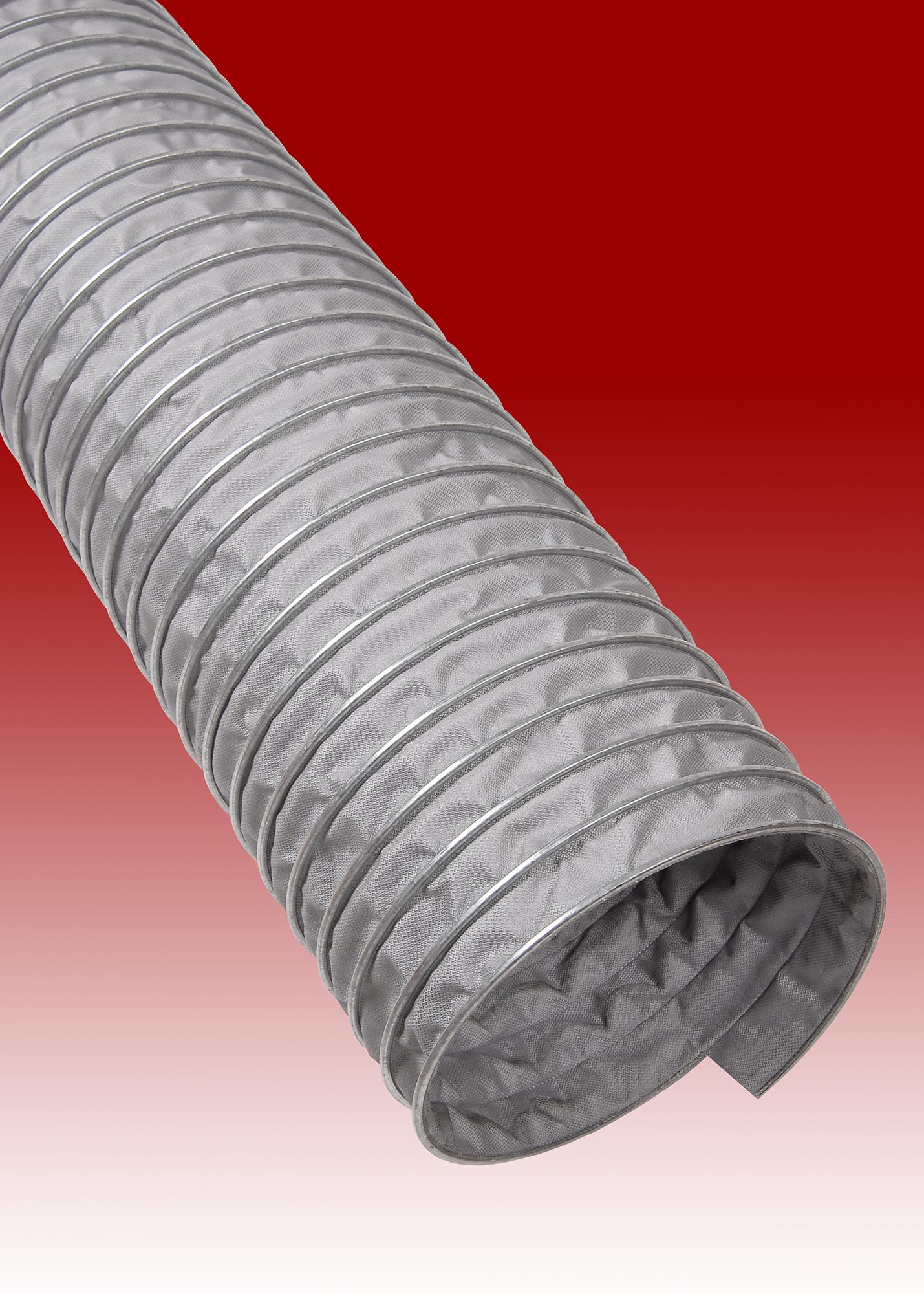 Designed for withstanding extreme temperatures (up to 1100°C) the Masterflex HT1100 is used on large plant machinery or military exhaust extraction systems. The 3-ply special coated high temperature fabric is reinforced with a external stainless steel helix that protects the hose against abrasion and scuffing.
