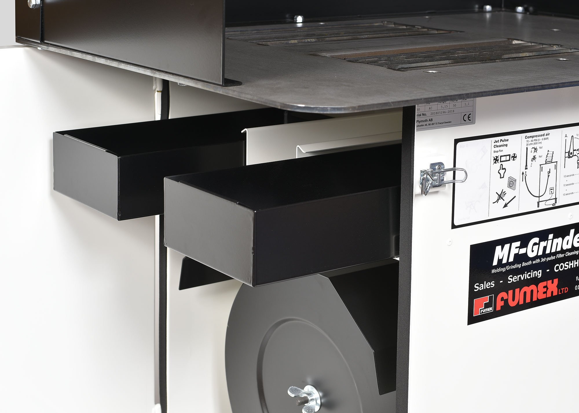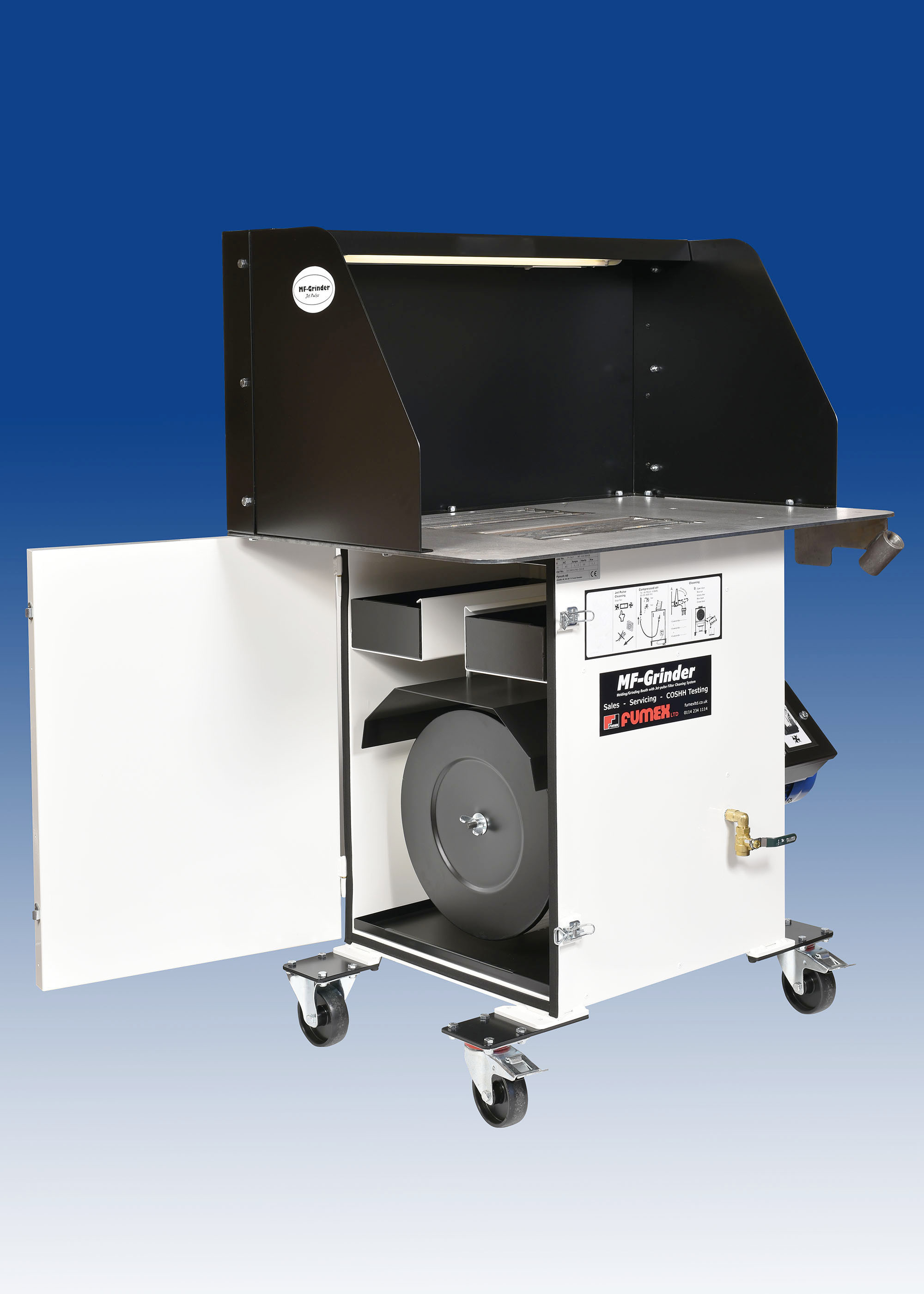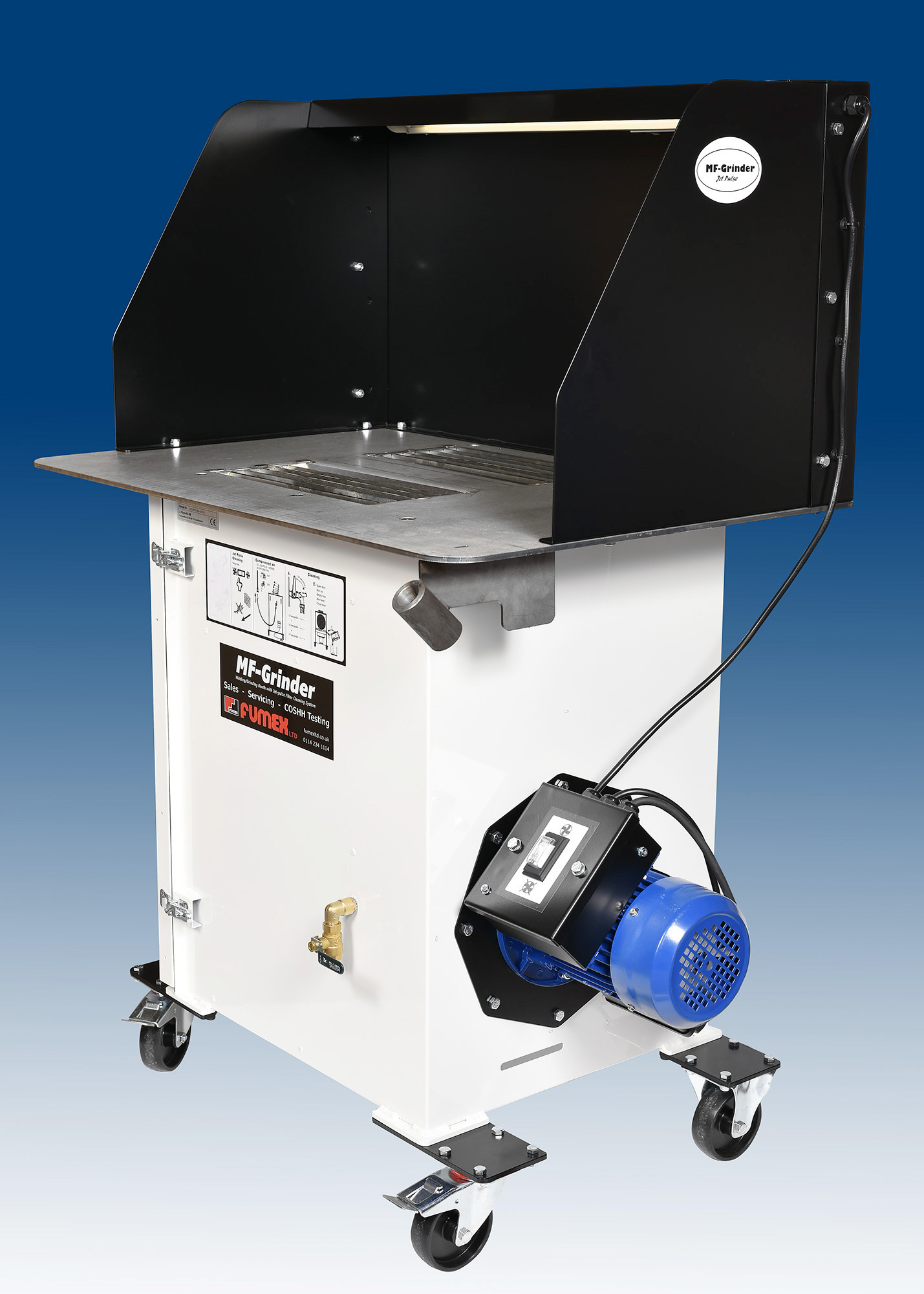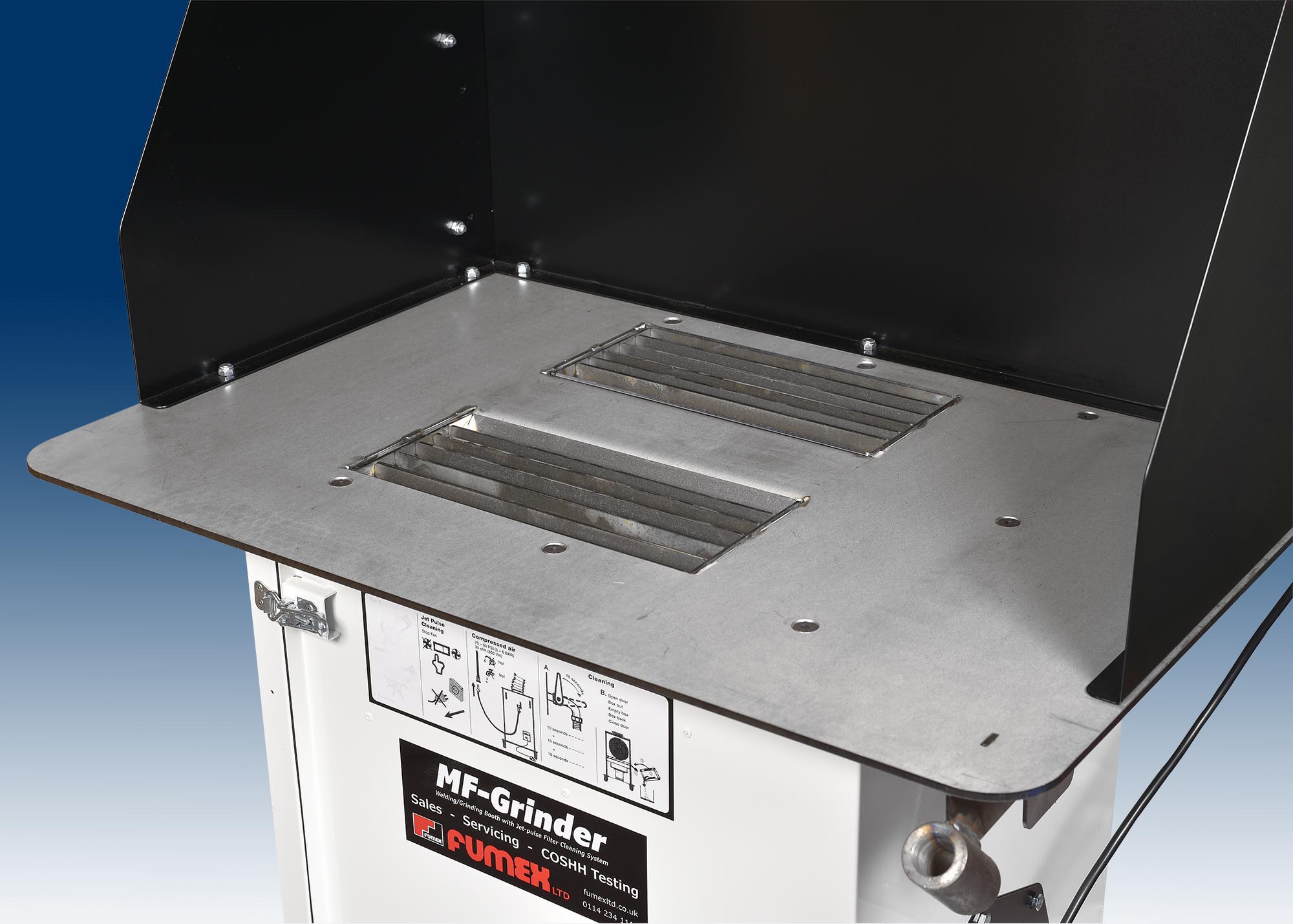 The MF-Grinder is a complete welding and light grinding booth that is easy to use and clean. Simply plug-in, switch on and you’re ready to weld or grind and with a large 900mmx600mmx6mm heavy duty steel table, our MF-Grinder is designed for many welding, grinding and fettling applications.