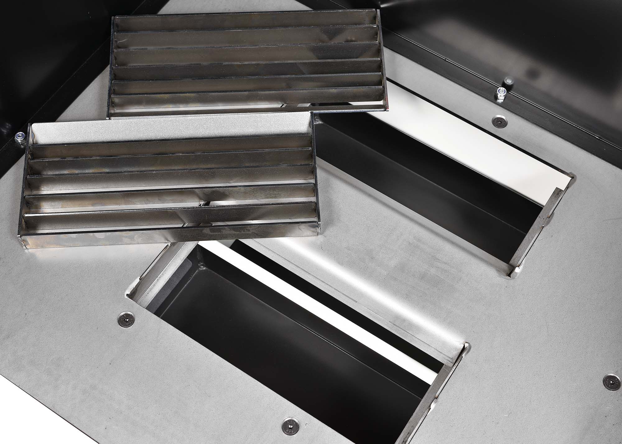 Fitted as standard with twin water spark traps to capture sparks and larger particulates, a powerful 1.1kW (240V) motor enables the twin grids to exhaust over 2000m³/h, ensuring that toxic weld fumes and grinding particles are safely drawn down through a large cartridge filter. The filtered air is then returned into the workplace to reduce heat loss.