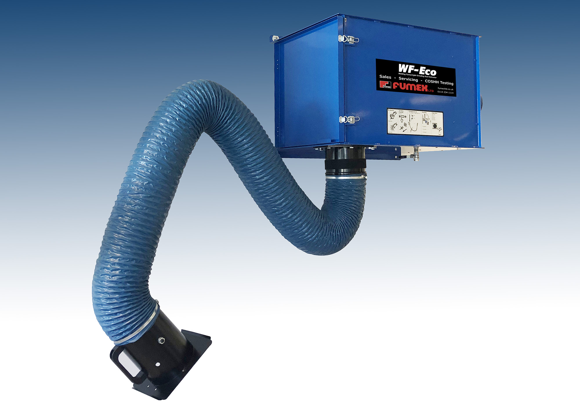 NB. The WF-Eco is now manufactured in white with a grey extraction arm, not in blue as pictured.